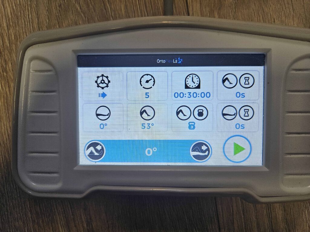 Ikona pierwsza od lewej strony na górze pozwala przełączać różne programy działania – najlepszym wyborem jest zazwyczaj program N, na którym szyna działa tak jak ją ustawimy samodzielnie, program kątomierz samodzielnie zwiększa kąt zgięcia podczas ćwiczeń, program strzałka zwiększa prędkość podczas ćwiczeń.